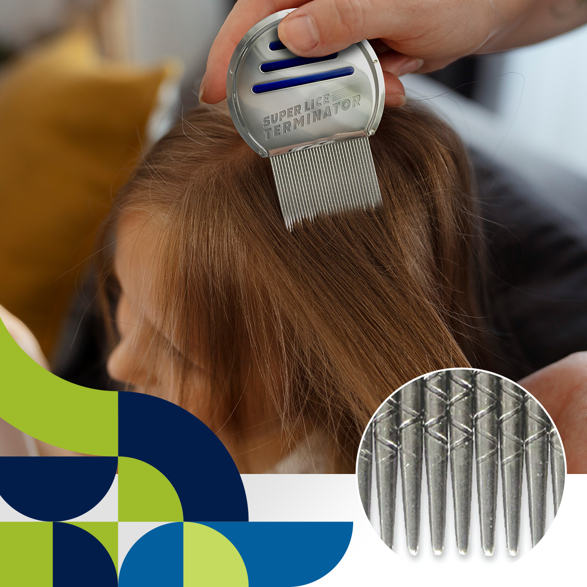 With its stainless-steel construction and powerful double-helix micro-grooved teeth, the Super Lice Terminator is the ultimate weapon for Moms in the battle against head lice and nits.